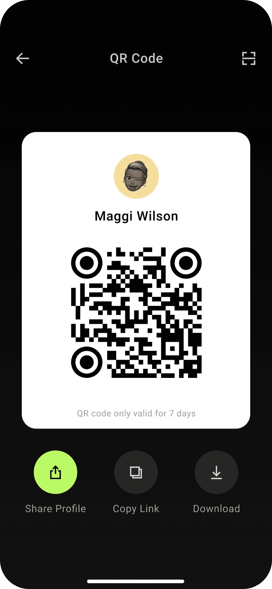 Sharing QR codes makes joining a group easier, where users can scan and connect.