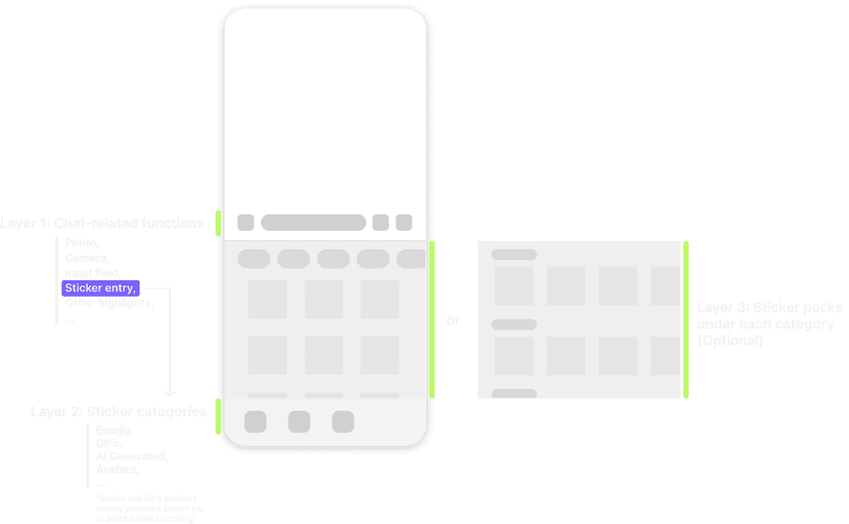 I analyzed sticker features on various apps and summarized the following design patterns in current market: