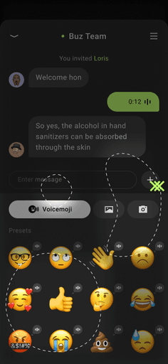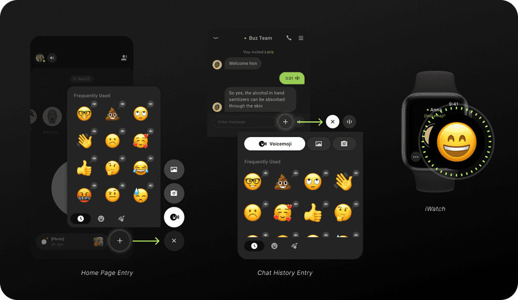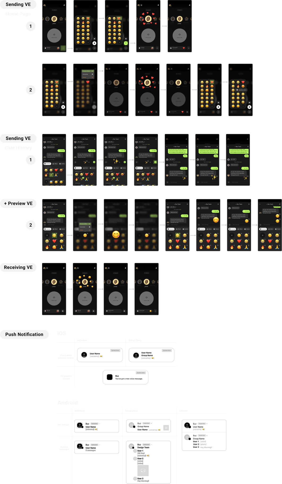 After collecting internal feedback, the early concepts are nearly finalized. Then, I created interactive hi-fi prototypes for 10 different task flows, including sending and receiving Voicemojis in different circumstances.