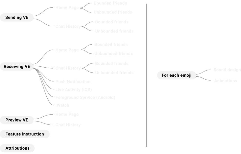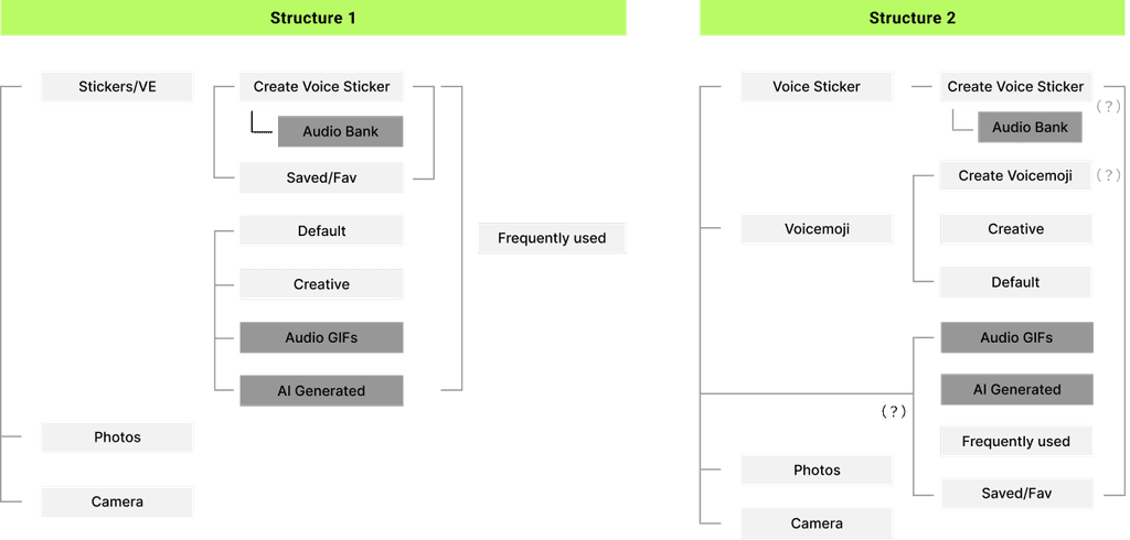 As I started to explore early concepts, I established the framework for potential flows within Voicemoji feature: